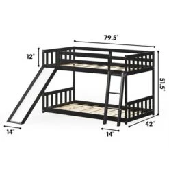 Costway Twin Over Twin Bunk Wooden Low Bed With Slide Ladder For Kids