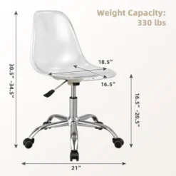 Costway Rolling Acrylic Armless Office Chair Swivel Vanity Chair Adjustable Height
