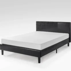 Jade Faux Leather Upholstered Platform Bed Frame Black – Zinus