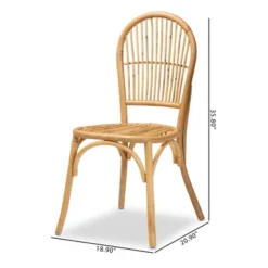 Due to the nature of the natural materials used in this product, it may have variations in areas such as, but not limited to, color, pattern, grain and texture. The hair-like strands of rattan/rattan-fiber are common due to nature of the material. Overall Dimensions: 35.80″ High x 18.90″ Wide x 20.90″ Deep; Seating Area Dimensions: 16.75″Wide x 16.75″ Deep x 18.88″ High; Legs: 16.13″ High; Back: 16.92″ High;