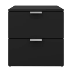 - The simple wood frame features a rich black finish