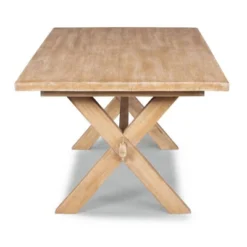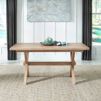 Traditional countryside blends style with modern function. Crafted of hardwood solids with finger joint construction adding strength to where the boards are glued together, in a unique hand-rubbed white washed finish. Trestle style design, with true trestle construction, with lower support rail attaching through the “X” leg base for added stability. Note finish and measurements may very slightly, assembly required. W-60″, D-38″, H-30″