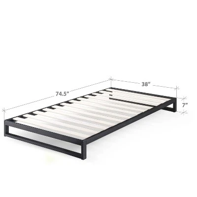 A sleek, modern design and heavy-duty, low-profile steel frame make this Zinus Trisha platform bed an easy pick for all the naps and restful slumbers in your future. Perfect for higher profile mattresses, it also features wooden slats designed to provide additional support.