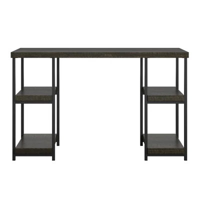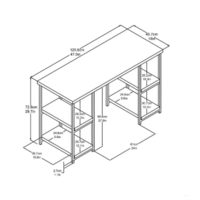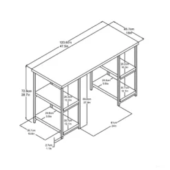 From the home office to the dorm room, the Room & Joy Arborview Double Pedestal Desk can be used in so many different spaces. The sturdy desktop provides a large work surface for your laptop and all your important papers. Four open shelves keep books, office supplies or accessories within easy reach. Made of laminated hollow core with a powder-coated metal frame for a sturdy build that will bring an instant upgrade to any space. The Desk ships flat to your door and requires assembly upon opening. Two adults are recommended to assemble. Once assembled, the Desk measures to be 28.7”H x 47.5”W x 18”D.