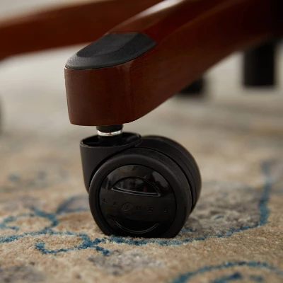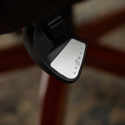 Specially designed to support up to 400 pounds, the La-Z-Boy Fairmont Big and Tall Executive Office Chair offers advanced performance features for exceptional comfort during work or play. This spacious and ergonomic office chair features memory foam cushions, which are made with an advanced layering system that offers zone-based support with cushioning in the areas you need it most. Strategically placed plush body pillows and a padded headrest combine to provide neck support and minimize pressure points. The fully adjustable controls, including height, tilt, and lift adjustments, ensure optimized body alignment and a personalized fit. Created with industrial-grade components for reliable and long-lasting use, this leather office chair is constructed with a thick plywood sub core, reinforced back bar, and heavy-duty casters. Rich brown bonded leather and hand-sculpted wooden arms create an elegant blend of traditional style and modern performance that is ideal for any office, home, or entertainment space.
