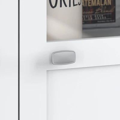 The Bush Furniture Broadview Bar Cabinet with Wine Storage brings a traditional look with contemporary flair into your dining room, kitchen or den. Organize your favorite beverages and accessories in style. With a fashionable and functional design, the 2 door storage cabinet works equally well as a wine, liquor or coffee bar without taking up too much room. The doors feature glass accents and conceal 3 stationary and 4 adjustable shelves. Enjoy a smooth close as the doors feature self-closing Euro-style hinges. A wine glass rack offers 3 rows of hanging stemware storage for easy access to your stemmed glasses. Optional wine racks hold up to 9 bottles. Elegant Satin Chrome hardware and a sturdy post leg design complete the beautiful Bar Cabinet, finished in White to complement any room in your home. Backed by a Bush Furniture 1 Year Manufacturer’s Warranty.