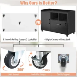 - 5 Casters for Easy Movement: Why ours is better? The chest of drawer is equipped with 5 smooth rolling casters(2 lockable) for easy movement, which is more flexible to use than 4 light casters without lock. The fifth casters at the bottom provides stable support for file cabinet.