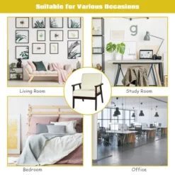 Made of solid rubber wood, the accent chair is sturdy and durable for a long lifespan. And breathable linen cover with friendly touch will offer you maximum comfort. Wide backrest and thick cushion are padded with high-density sponge to ensure optimal softness and good resilience. Ergonomic design can perfectly conform to the curve of the body to fully relax yourself. With simple and elegant style, it is just what you need for your living room to receive your friends!