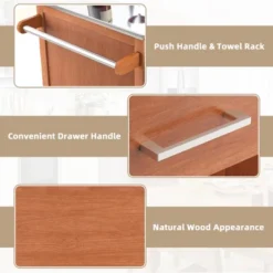 This is our wood kitchen storage trolley with Stainless steel top. It has an enclosed space and a drawer. It can provide extra space to your kitchen. In addition, it is easy to move with swivel wheels. it is the best choice to your kitchen. Do not hesitate to buy it now!