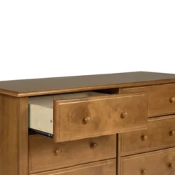 Simply sophisticated, the Jayden 6-Drawer Double Dresser offers the optimal storage solution for any nursery or home. Pairing effortlessly with both the Jayden and Autumn Collection, the Jayden Double Dresser features the same transcending quality design. Made of durable New Zealand pine wood with new and improved metal drawer glide hardware and stop mechanism construction, Jayden provides a smooth and safe glide for long-lasting use through the years.