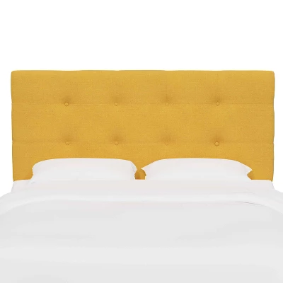 - Upholstered headboard with two rows of button tufting adds a touch of style