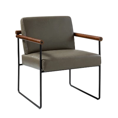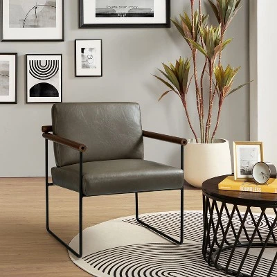 Discover this chic and ergonomically designed armchair, meticulously crafted to elevate both style and comfort. The mesmerizing round solid wood arm and back exudes an air of elegance, elevating its overall appeal. Reinforced by sturdy metal tube sides, this chair guarantees long-lasting durability. Plus, its versatile design seamlessly fits into various spaces such as living rooms, bedrooms, and home offices, while the removable seat cushion caters to your individual preferences, ensuring personalized comfort. Experience the seamless upkeep of our easy-to-clean, water-resistant PU fabric as you embrace its effortless maintenance. With the provided tools and screws in the package, assembly becomes a breeze. Immerse yourself in the perfect fusion of sophistication, functionality, and convenience with our exquisite armchair.