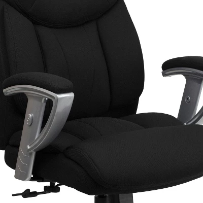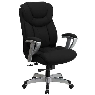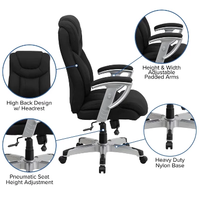 Finding a comfortable chair is essential when sitting for long periods at a time. Big & Tall office chairs are designed to accommodate larger and taller body types. This chair has been tested to hold a capacity of up to 400 lbs., offering a broader seat and back width. Upholstered in supple LeatherSoft upholstery, this chair will add an upscale look to your workspace. LeatherSoft is leather and polyurethane for softness and durability. The tilt lock mechanism rocks/tilts the chair and locks in an upright position while the tilt tension adjustment knob adjusts the chair’s backward tilt resistance. High back office chairs have backs extending to the upper back for greater support. The high back design relieves tension in the lower back, preventing long term strain. This office chair features plenty of thick, plush padding to provide greater support. Chair easily swivels 360 degrees to get the maximum use of your workspace. The pneumatic adjustment lever will allow you to easily adjust the seat to your desired height. The height and width adjustable padded armrests take the pressure off the shoulders and the neck. The silver nylon capped metal base with black caps prevents feet from slipping.