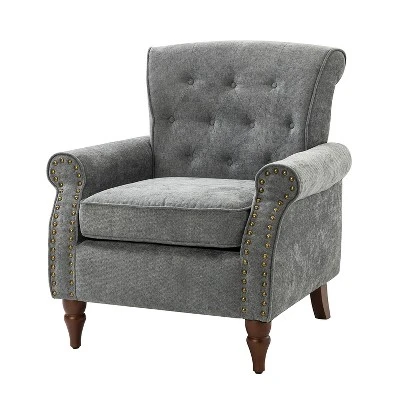 Whether catching your favorite shows after a long day or kicking back with the latest bestseller on your day off, this transitional armchair offers the perfect perching point. Crafted with a manufactured wood frame and filled with foam, this armchair with a built-in S-spring features a simple yet fashionable charm. Chic nailhead trim rounds out the arms cooperating with button-tufted back cushions for a dash of distinction. Perfect for shared family spaces, the components can be combined in any configuration to create your ideal workspace, media room or home office. Item Size: 29.5″Wx29.7″Dx34″H, Seat Size: 19″Wx21″Dx18.2″H.