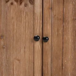 A natural color palette and convenient utility make the Glynn cabinet a fantastic addition to any kitchen or dining room. Made in China, the Glynn is comprised of a wood frame showcasing a lightly weathered two-tone white and oak brown finish for an aged look. One drawer and a compartment behind two doors provide ample storage space to help organize busy areas. Fully assembled, the Glynn is accented with black finished metal handles for a touch of modern charm. A handy piece that easily blends in with modern room layouts, the Glynn cabinet easily upgrades any space. Dimensions: 31.9″ High x 31.1″ Wide x 13.2″ Deep; Drawer: 5.9″ High x 25.6″ Wide x 10.6″ Deep; Shelf: 16.9″ High x 26.8″ Wide x 11.4″ Deep; Legs: 3.7″ High;