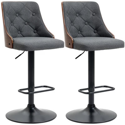 Swivel bar stools with backs easily accent your kitchen counter. Adjust them to the height of your comfort. Swivel to chat face-to-face with their 360-degree rotatable seat. A mid-size back and footrest provide steady support for long sitting sessions. With tufted backrests held up by modern and contemporary steel, your home décor just got an upgrade. Make your house more like a home with HOMCOM.