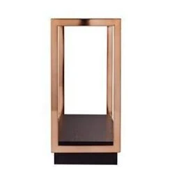 - Sleek metal and inset glass craft a classy feel