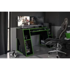 The Kyoto Gaming Desk was design to provide you with the best gaming experience. The desktop measures 47 inches wide providing plenty of space for multiple monitors. The keyboard tray also allows for extra table top space and cable management keeps all your cords organized. Multiple shelves provide plenty of storage space for all your gaming components. Sturdy wood construction provides stability while the smooth melamine finish makes the desk durable.