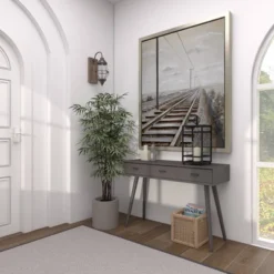 Use this long console table to add style and storage options to a living room or entryway. Bring a finishing touch to your home with an inviting appeal with this console table. A sturdy and long lasting construction that for a years of enjoyment. This console table features 3 drawers that are 12.13″ inches deep. Suitable for indoor use only. Some assembly required. Maximum weight limit is 100 lbs. Modern design.