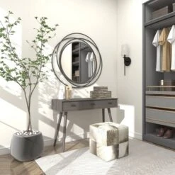 - This modern console table features three deep drawers for easy access to storage space