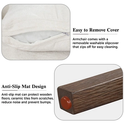 Use this armchair to make your living room look chic and comfy. Ideal for bedrooms, home theater, and studio. This Modern chair is made of high-quality velvet fabric, high-density sponges, and a solid rubberwood structure, wide seat depth will provide your body with sufficient and comfortable space. Solid rubberwood frame can easily support the weight of 330 lbs. And the legs with padding under the feet to protect your floors from scuffs and scratches. Padded armrest and soft cushioned seat provide comfort and support for hours of comfortable seating.
