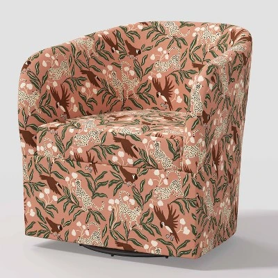 Add a graceful look to any space in your home with the Taylor Swivel Chair from Skyline Furniture. Set on a wooden frame, this upholstered armchair features a floral print for an eye-catching look that works well throughout the year. The swivel design helps provide easy movement and makes the chair suitable for a variety of spaces.